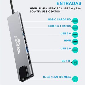 Hub Adaptador Tipo C 8 En 1 Genérico