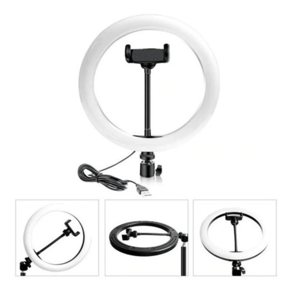 Aro De Luz Led Rgb 30 Cm Colorido Con Soporte Celular Estructura Negro