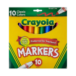 Esta variedad de rotuladores presenta 10 colores Crayola clásicos con tinta de alta calidad y colores verdaderos. Añade colores llamativos y vibrantes a tus obras de arte, tareas escolares y otros proyectos creativos. La gama de colores clásicos y brillantes de este paquete invita a la expresión imaginativa. Los rotuladores Crayola de línea ancha