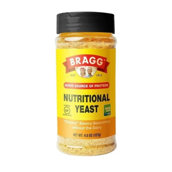 El Bragg Nutritional Yeast Seasoning es un condimento en polvo hecho de levadura inactiva y enriquecido con una variedad de vitaminas y minerales esenciales. Es conocido por su sabor a queso, lo que lo convierte en un sustituto ideal del queso para aquellos que siguen una dieta vegana o evitan los lácteos.