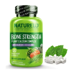 NATURELO Fuerza ósea – Calcio a base de plantas con magnesio, potasio, vitamina D3, VIT C, K2 – OMG, soja, ingredientes sin gluten, suplemento alimenticio entero para la salud ósea – 120 cápsulas vegetarianas.