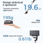 , peso 195 g (incluye batería) Material principal PA6 +30% GF, ABSmax. Carga útil 280 g Dimensiones plegadas 140,2 x 54 x 36,1 mm Teléfono con capucha Rango de ancho 55 ~ 100 mm Compatibilidad con teléfonos Serie iOS: 12/12 Pro/12 Pro Max/11/11 Pro/11 Pro Max/XS MAX/ XS/XR/X/Plus/8/7/6s/6/5S/5/SE y teléfonos Android de peso similar de menos de 7 pulgadas Control remoto de radiofrecuencia de 2,4 G, dispositivo bluetooth (sin control remoto bluetooth) distancia de hasta 10 metros/batería de 460 mAh/Tiempo de funcionamiento: 3 horas/Tiempo de carga: 45 minutos/Longitud extendida 50 cm Pan/Rollo Rango mecánico: 360° Modo de trabajo 1. Modo de bloqueo 2. Botón de encendido/apagado del modo de seguimiento POV Pulsar prolongadamente 3 segundos: encender/apagar una sola pulsación: cambiar entre el modo de bloqueo y seguimiento en punto de vista (el modo de bloqueo es el modo predeterminado) Pulsar dos veces: volver a centralizar el joystick Pulsación triple: rotación automática (inicio automático de 300°/rotación horizontal de 360°) Pulsa cinco veces: calibración automática Pulsa siete veces: emparejamiento del mando a distancia Pulsa nueve veces: cancela el emparejamiento Bluetooth del teléfono Protección del motor Sí, si no hay ningún teléfono montado, el motor entrará en estado de protección Hibernación Zoom In Out Pulse y mantenga pulsado el botón de navegación hacia arriba/abajo para controlar el zoom en OutCaracterísticas clave de la aplicación Hohem Joy Seguimiento facial/seguimiento de objetosControl de gesticulasModo ideoPlantilla de vídeo generada automáticamente en el modo MomentMotion Timelapse Modelo de vídeo generado automáticamente en el modo MomentDolly Zoom Plantilla de vídeo generada automáticamente en el modo Moment Clone Plantilla de vídeo panorámico generada automáticamente en el modo Moment Beauty and filtrosConfiguración de cámaraActualización de eMax. Corriente de trabajo: 500 mA, tensión de trabajo: 3,7 V, entrada de 5 V-1 A, Bluetooth 3.0 + Bluetooth 4.0, temperatura de trabajo: -10 45 °C, almacenamiento de accesorios estándar, cable de carga.