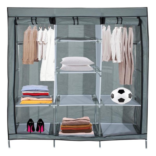 Inicio Hogar/Familia Limpieza/Orden Organizadores Closet Armario Doble Desarmable Portatil Con Forro Color Gris claro Tamaño Único