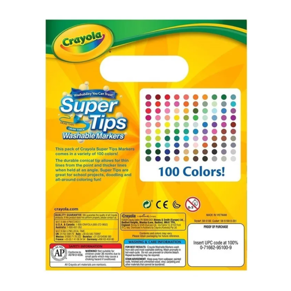 Crayola Super Tips, marcadores de tinta lavable (100 unidades)