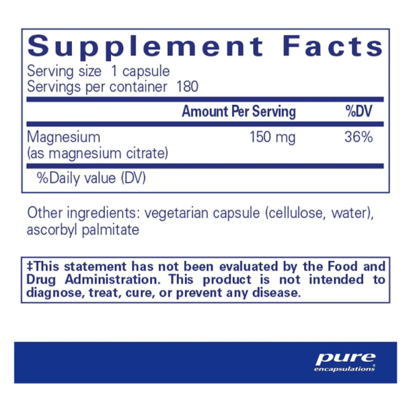 Encapsulaciones Puras Citrato De Magnesio 180 Cápsulas