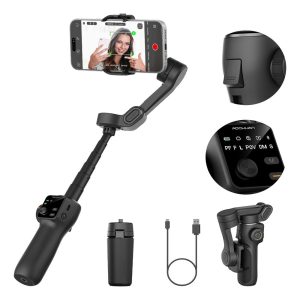 Diseño liviano: el estabilizador Gimbal Smart X PRO para teléfonos inteligentes de Aochuan tiene un diseño compacto y liviano, lo que facilita su transporte y uso en diferentes situaciones y entornos.