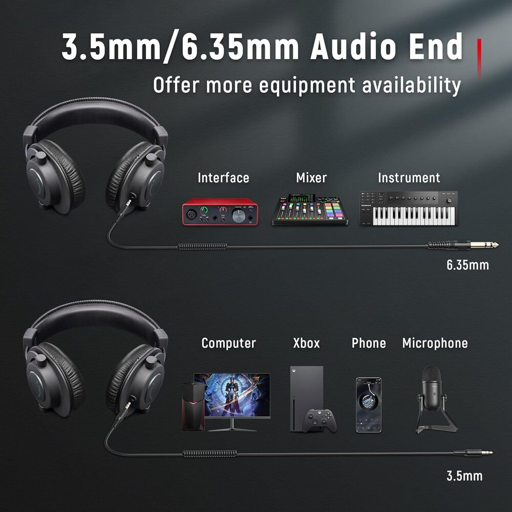 La diadema ajustable de apoyo y las almohadillas acolchadas suaves proporcionan una posición de uso cómoda cuando la creatividad está en marcha para el maratón de creación o mientras se transmite un podcast o una voz en off. Con un peso de 265 g, los auriculares de grabación, los monitores de audio, pueden reducir su sensación de pesadez. Tus oídos y tu cabeza siguen sintiéndose suaves y satisfechos, incluso cuando se trabaja durante largas sesiones con los auriculares de mezcla.