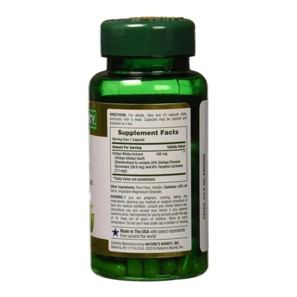 •Suministro de ginkgo biloba: el extracto estandarizado de ginkgo biloba de la naturaleza de 120 mg puede ayudar a mantener una circulación saludable y puede ayudar a apoyar la alerta mental y la función cerebral saludable, perfecto para ocasionales problemas de memoria leve asociados con el envejecimiento.