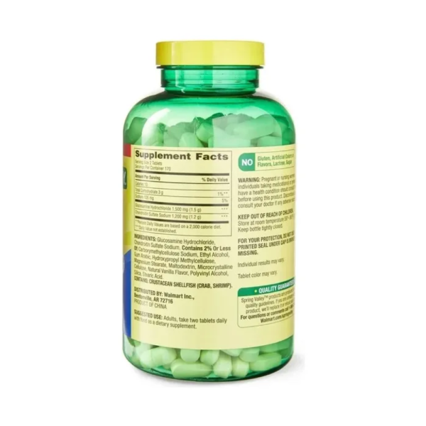 Nuestro suplemento dietético en tabletas de glucosamina y condroitina de triple potencia Spring Valley está formulado para respaldar la salud de las articulaciones.* Cada porción de esta fórmula de triple potencia proporciona 1400 mg de glucosamina y 1200 mg de condroitina. La glucosamina y la condroitina brindan apoyo nutricional a los tejidos conectivos y pueden promover la salud y el bienestar de las articulaciones.* La dosis sugerida para adultos es de dos tabletas al día, preferiblemente con una comida. Estas tabletas no contienen gluten, colorantes ni saborizantes artificiales, azúcar ni lactosa. Puede estar seguro de que el tamaño económico del suplemento dietético de las tabletas de condroitina y glucosamina de triple potencia de Spring Valley se produce con estrictas pautas de calidad y está respaldado por nuestra garantía de calidad.