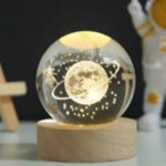 Lampara 3d Bola De Cristal Planeta Tierra Con Base Madera