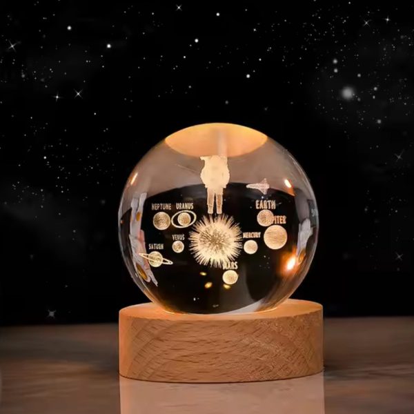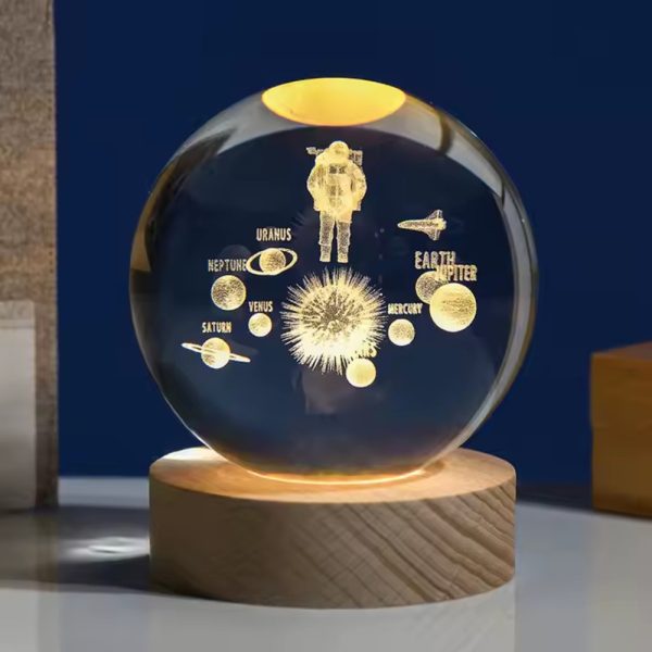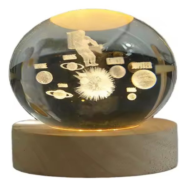 La Lámpara En Bola De Cristal 3d Astronauta Con Base De Madera es una pieza decorativa y funcional que combina elegancia y tecnología en iluminación ambiental. Su innovador diseño en forma de esfera de cristal con efecto 3D recrea la impresionante apariencia de una luna llena, aportando un toque místico y sofisticado a cualquier espacio. La base de madera natural no solo brinda estabilidad, sino que también añade calidez y estilo, convirtiéndola en el complemento ideal para salas de estar, dormitorios y oficinas.
