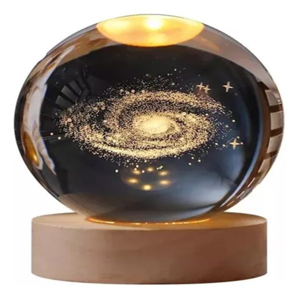 Lámpara En Bola De Cristal 3d Galaxia Con Base De Madera