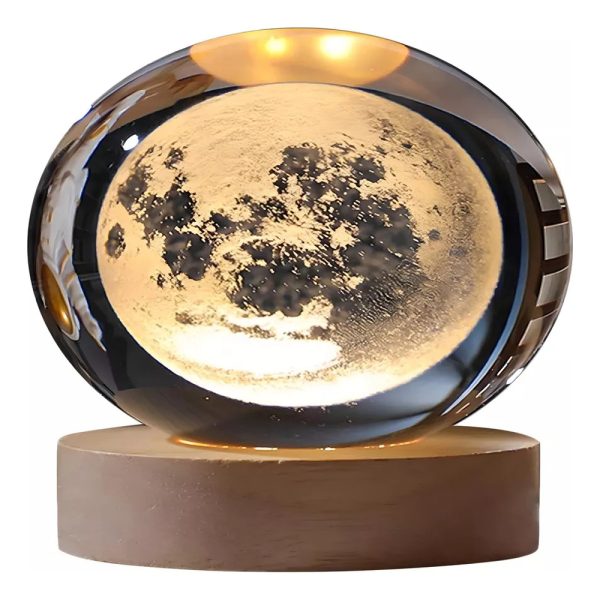 Lámpara En Bola De Cristal 3d Luna Llena Con Base De Madera