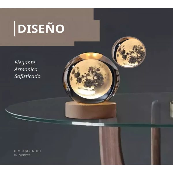 La Lámpara En Bola De Cristal 3d Luna Llena Con Base De Madera es una pieza decorativa y funcional que combina elegancia y tecnología en iluminación ambiental. Su innovador diseño en forma de esfera de cristal con efecto 3D recrea la impresionante apariencia de una luna llena, aportando un toque místico y sofisticado a cualquier espacio. La base de madera natural no solo brinda estabilidad, sino que también añade calidez y estilo, convirtiéndola en el complemento ideal para salas de estar, dormitorios y oficinas.