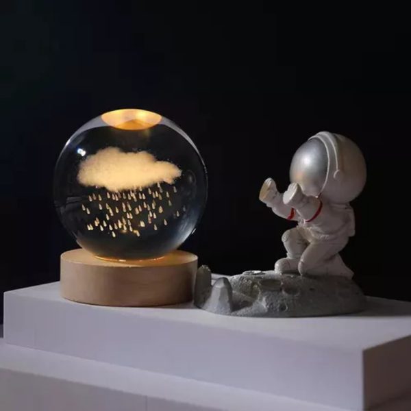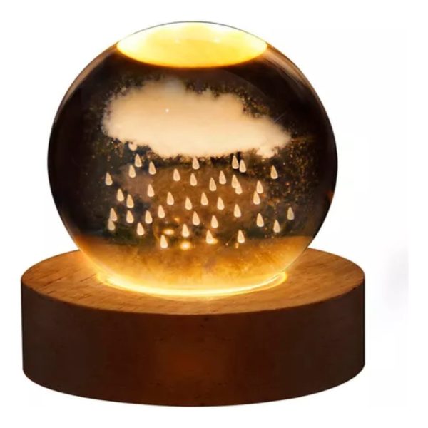 Lámpara En Bola De Cristal 3d Nube Con Lluvia Base De Madera