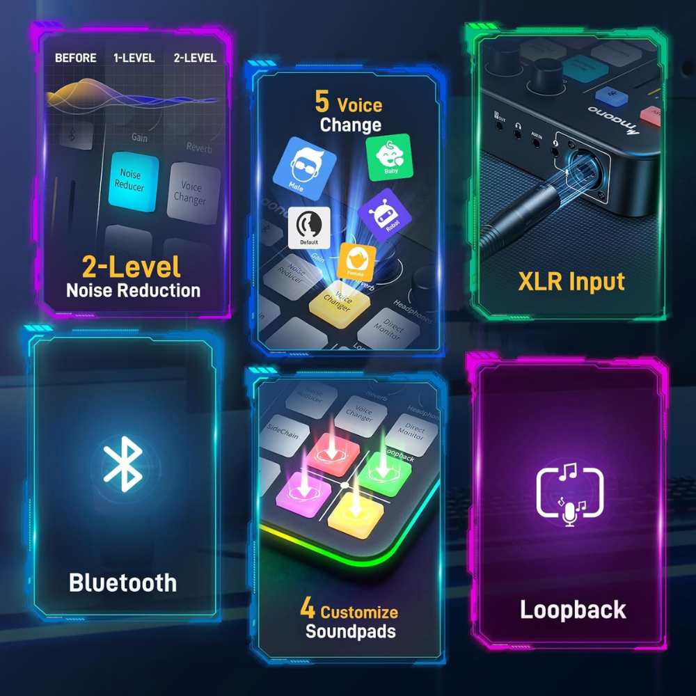 El Maono Caster G1 Neo es una estación de audio todo en uno diseñada para creadores de contenido, podcasters, y streamers que buscan mejorar la calidad de su sonido con facilidad y profesionalismo. Este dispositivo compacto y potente combina múltiples funciones en un solo equipo, permitiendo un control total sobre la producción de audio.