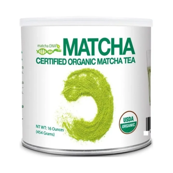 Té delicioso y nutritivo: Lata de 16 oz de polvo de té verde MatchaDNA orgánico, contiene naturalmente antioxidantes, vitaminas, minerales, aminoácidos y EGCG.