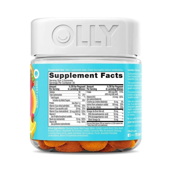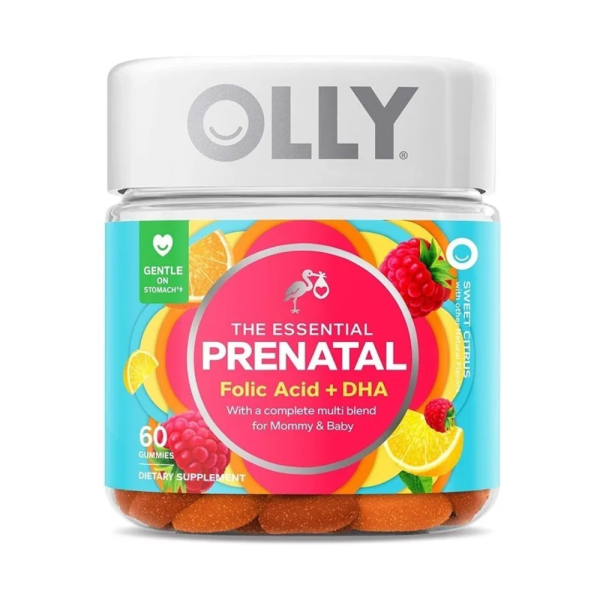 •Multivitaminas prenatales olly esencial: gomitas de vitaminas prenatales que van los nueve contigo y tu bebé en crecimiento. Los prenatales de gomitas de cítricos amigables con el vientre tienen nutrientes esenciales para un embarazo saludable: ácido fólico, vitamina D y Omega-3 DHA.