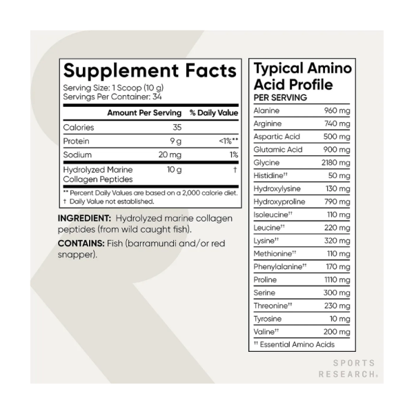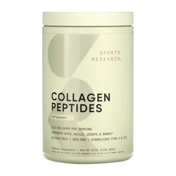 Sports Research. Péptidos de colágeno, 1 libra (16 onzas), alimentado con hierbas, certificado respetuoso de Paleo, sin OMGs ni gluten, sin sabor y fácil de mezclar