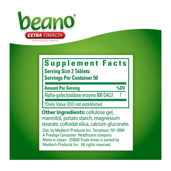 Beano Extra Strength es un suplemento diseñado para proporcionar alivio efectivo contra los efectos de la digestión de alimentos que pueden causar malestar abdominal. Su fórmula avanzada contiene enzimas digestivas adicionales, como la alfa-galactosidasa, que ayuda a descomponer los carbohidratos complejos y reducir la formación de gases en el tracto digestivo. Ideal para quienes disfrutan de comidas ricas en fibra o alimentos difíciles de digerir, Beano Extra Strength facilita una digestión más cómoda y reduce la hinchazón, permitiéndote disfrutar de tus comidas con tranquilidad.