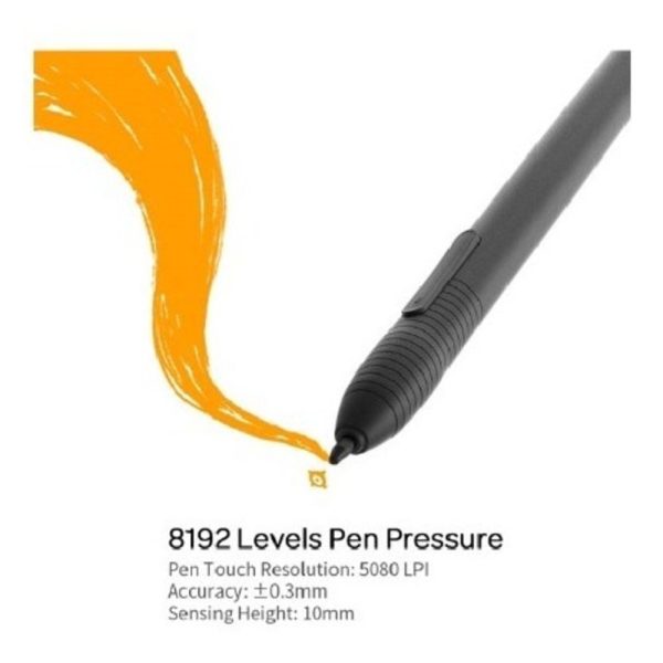•8192 niveles de presión del bolígrafo: el bolígrafo cuenta con 8192 niveles de sensibilidad a la presión, te ayuda a dibujar líneas más gruesas o más finas dependiendo de lo duro que empujas el bolígrafo. Hace que las líneas sean más suaves y naturales, lo que te permite capturar ideas más rápido y más fácil.