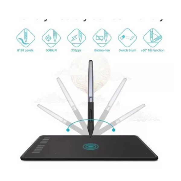 Área de trabajo amplia: A pesar de su tamaño compacto, la H950P ofrece un área de trabajo generosa de 8.7 x 5.4 pulgadas, proporcionando suficiente espacio para dibujar y crear con comodidad.