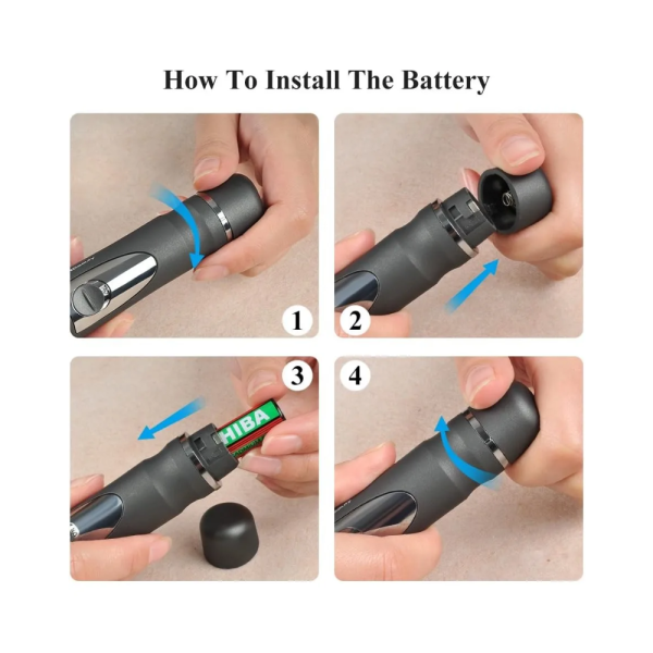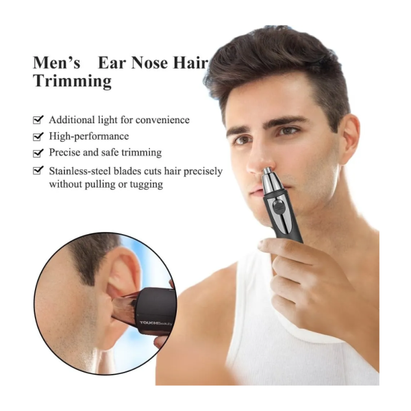 Conviértete en un caballero apuesto usando la recortadora de pelo para orejas y nariz de TOUCHBeauty! Sin dolor y seguro. Las cuchillas de acero inoxidable hipoalergénicas, curvas y de doble filo, cortan el pelo de manera limpia y cómoda desde la parte superior y los lados para recortar. Un cono de seguridad guía el pelo hacia las cuchillas y evita que las propias cuchillas entren en contacto con la piel. Precisión y potencia. Las cuchillas mejoradas de doble filo utilizan una acción de cuchilla ciclónica para un recorte rápido y eficiente sin irritar la piel ni jalar o tirar del pelo. El motor suave y potente hace el trabajo rápidamente, ¡así que estarás listo en poco tiempo! Luz incorporada para mayor comodidad, la recortadora viene con una luz integrada para que puedas capturar fácilmente cualquier pelo que puedas haber dejado atrás. Tapa protectora de las cuchillas. Su diseño compacto y discreto con una tapa protectora de las cuchillas permite que se mezcle fácilmente con otros productos en una bolsa. Cómodo de manejar. Cuerpo premium de color gris mate con textura de goma antideslizante y diseño ergonómico para un control y comodidad máximos. Funciona con pilas. Esta recortadora funciona con una pila AA (no incluida) y tiene una autonomía de hasta 30 minutos, por lo que no tendrás que preocuparte por los enchufes o los cables. Además, su tamaño pequeño la hace portátil, para que puedas llevarla contigo cuando viajes. Ideal para regalar. El Groomer TOUCHBeauty para hombres, diseñado para ser compacto, ligero y fácil de recortar el pelo de las orejas y la nariz en cualquier ángulo, es un gran regalo para tu esposo, familia o amigos.